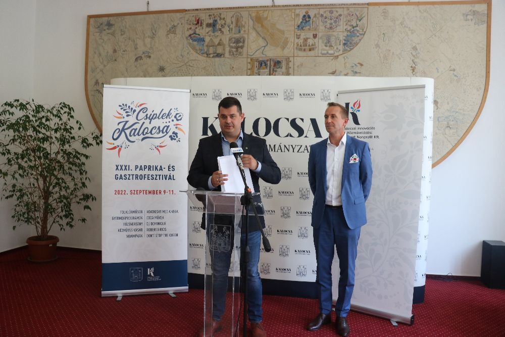 Dr. Filvig Géza polgármester és Zsikó Zoltán, a Kalocsai Innovációs és Közművelődési Központ (KIKK) igazgatója augusztus 31-én, szerdán a Városházán tartott sajtótájékoztatót az idén harmincegyedik alkalommal megrendezett, ezúttal augusztus 9-11-ig tartó Csíplek Kalocsa! XXXI. Paprika és Gasztrofesztivál programjáról.