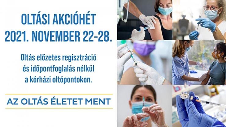 Az átoltottság további növelése és a járvány megfékezése érdekében a kormány 2021. november 22-28. között oltási akcióhetet indít a kórházi oltópontokon, így a kalocsai Szent Kereszt Kórház oltópontján is. A kórházak országszerte - Budapesten kiemelten - megemelt oltási kapacitással és időpontfoglalás nélkül is várják azon a héten a még oltatlanokat, és akár az elmaradt második, harmadik megerősítő oltást felvenni kívánókat is