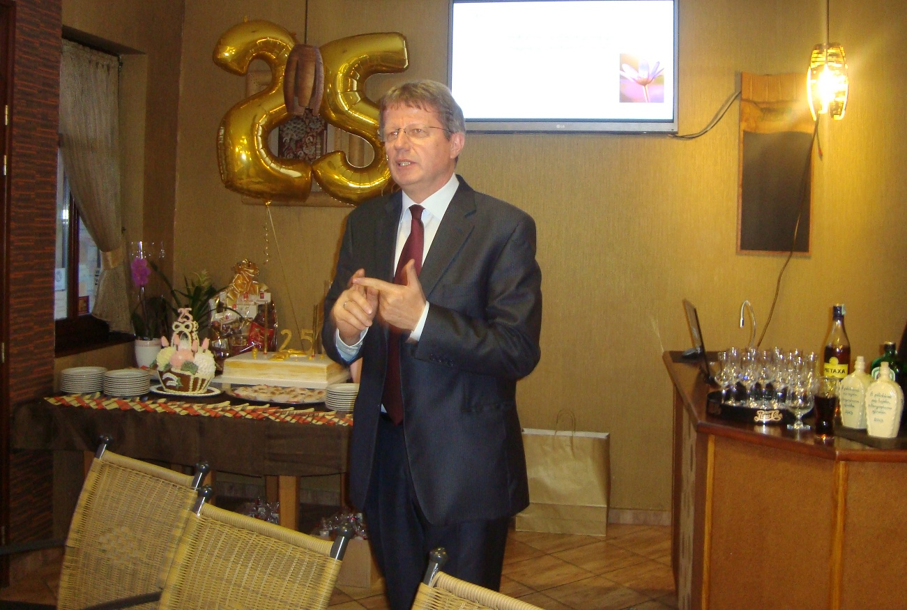 Dr. Feller Antal vezérigazgató személyében a gyógyszerforgalmazó szakma egyik legmagasabb rangú kiválósága érkezett az ünnepségre, ezért mondanivalóját talán a szokottnál is nagyobb figyelem kísérte. A korábban gyógyszerkutatóként is dolgozó szakember a gyógyszer-nagykereskedelem és a patikák együttműködésének bemutatását követően megköszönte a szívből jövő vendégszeretetet, majd a jubileumi évforduló alkalmából emléklapot és ajándéktárgyat adott át a gyógyszertár vezetője, dr. Kasziba Istvánné és munkatársai részére.