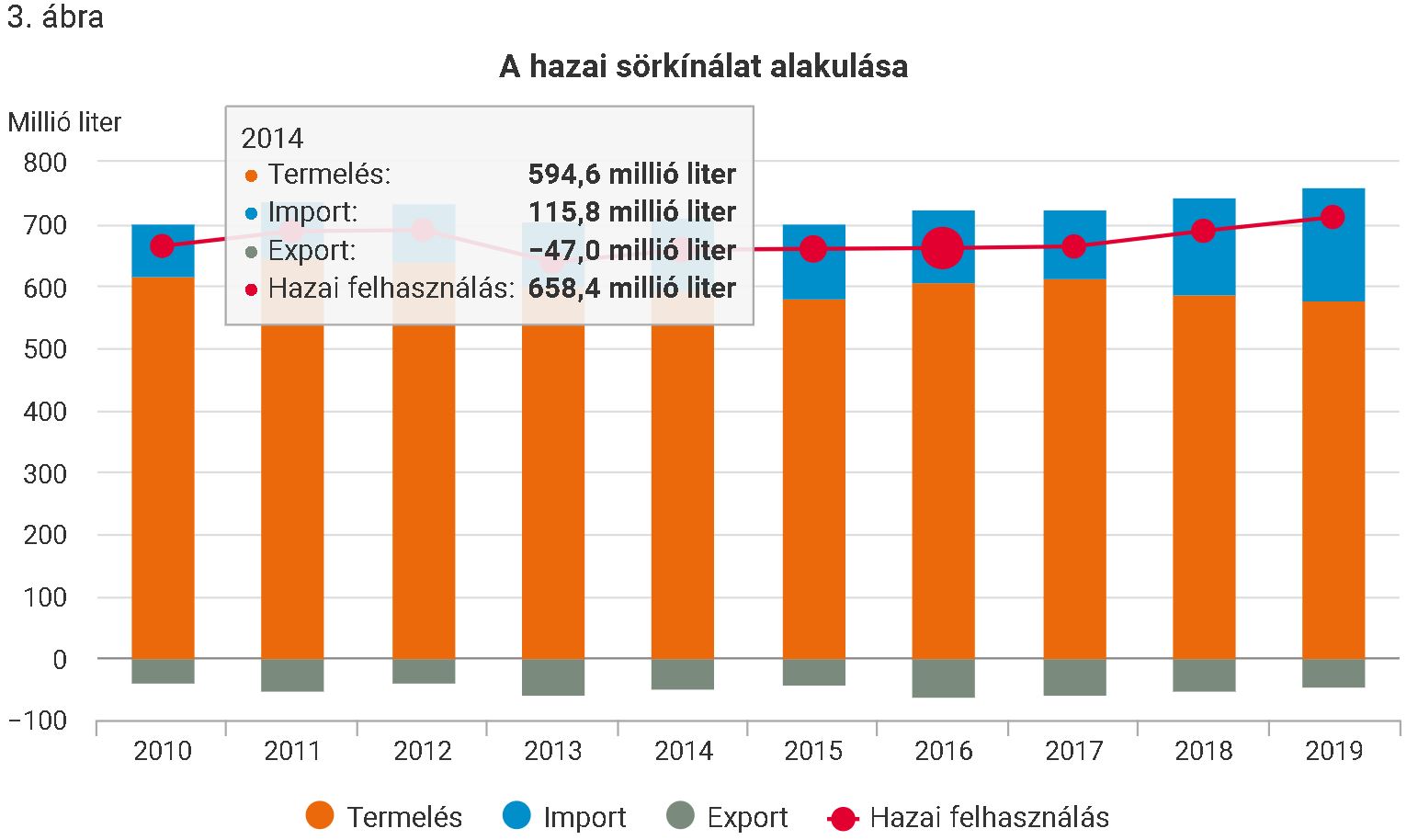 A magyarországi sörkínálatot alapvetően a hazai termelés biztosítja, aminek részesedése a felhasználásból a 2010-es évek végére csökkent, mivel egyre nagyobb mennyiségű külföldi sör jelent meg a hazai piacon, színesítve a kínálatot. Az import tíz év átlagában a fogyasztás 18%-át adta, 2019-ben azonban már majdnem 26%-át. Hazánk a sör külkereskedelmi forgalma alapján nettó importőr, a vizsgált időszakban évente átlagosan 2,4-szer nagyobb mennyiséget hoztunk be külföldről, mint amennyit exportáltunk. 2010 és 2019 között a kivitel a hazai sörtermelés 8,0%-át tette ki.