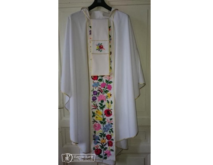 a katolikus közösség tagjai egy kalocsai mintás hímzett miseruhát készíttettek Ferenc pápának.