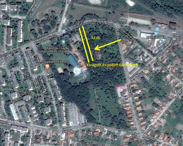 A kivágásra ítélt fák „X” felirattal megjelölésre kerültek, érdeklődés esetén, az alábbi térképen jelölt helyen megtekinthetőek.