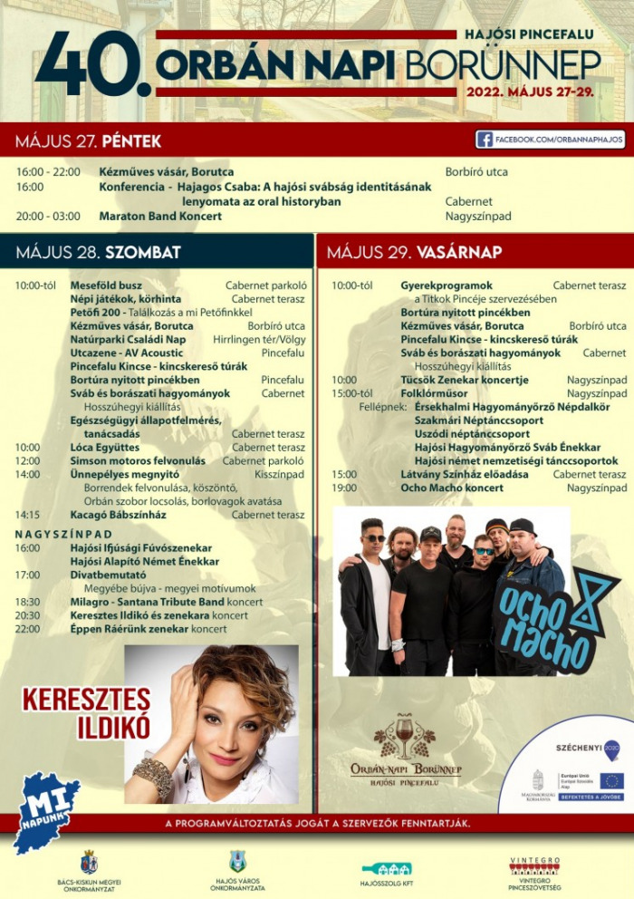 Negyvenedik alkalommal várja a látogatókat Európa legnagyobb összefüggő pincefaluja az Orbán Napi Borünnepen.