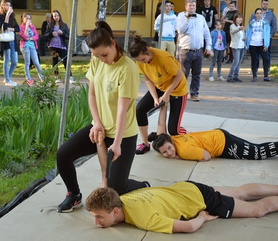Az Állampusztai Országos Büntetés-végrehajtási Intézet elhozta a rabomobilját, és a felügyelők is bemutatták a büntetés-végrehajtásban rendszeresített felszerelést. A bejárattal szemben Szűcs Zsolt 5 danos kyokushin mester tartott karate bemutatót a 11. A osztályosokkal, beljebb pedig Biacsiné Kutus Györgyi támogatónktól leshettük el a körömápolás alapfogásait. A kalocsai Tescóban működő pékségből hárman jöttek el a programra, hogy segítsenek a tésztaformázás rejtelmeinek a bemutatásában, és a Tescónak köszönhetjük a nyereménytárgyak egy részét, valamint a vendéglátás nyersanyagait és kellékeit is.