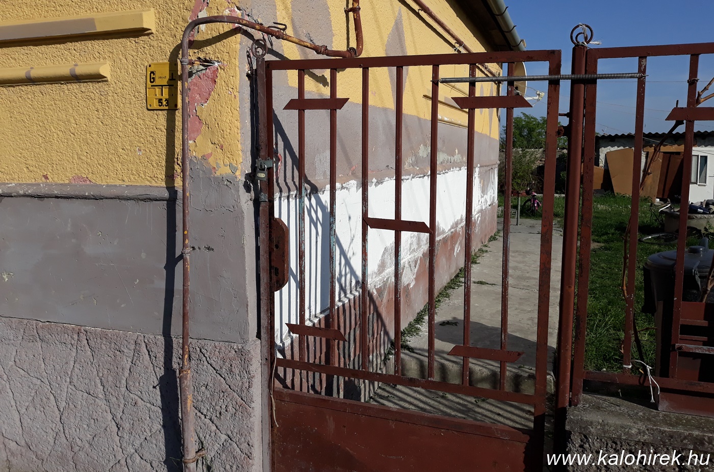A házhoz érve éles a kontraszt a többi portához képest, a kapun lévő lakat arról árulkodik, mintha a házat nem laknák, nincs itthon senki.