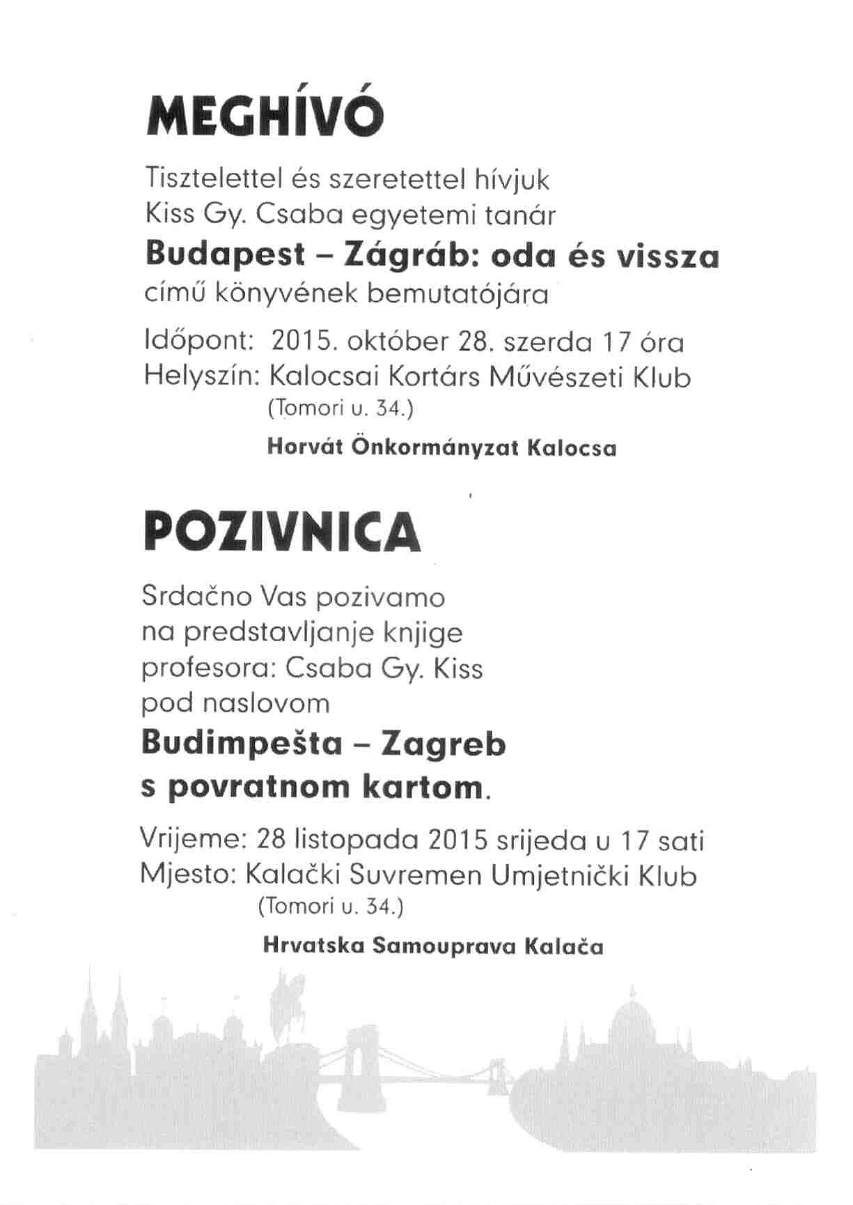 Szerda délután Kiss Gy. Csaba egyetemi tanár Budapest - Zágráb: oda és vissza című könyvét ismerhetik meg az érdeklődők.