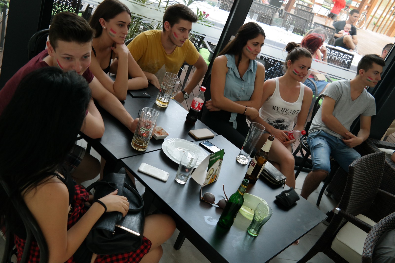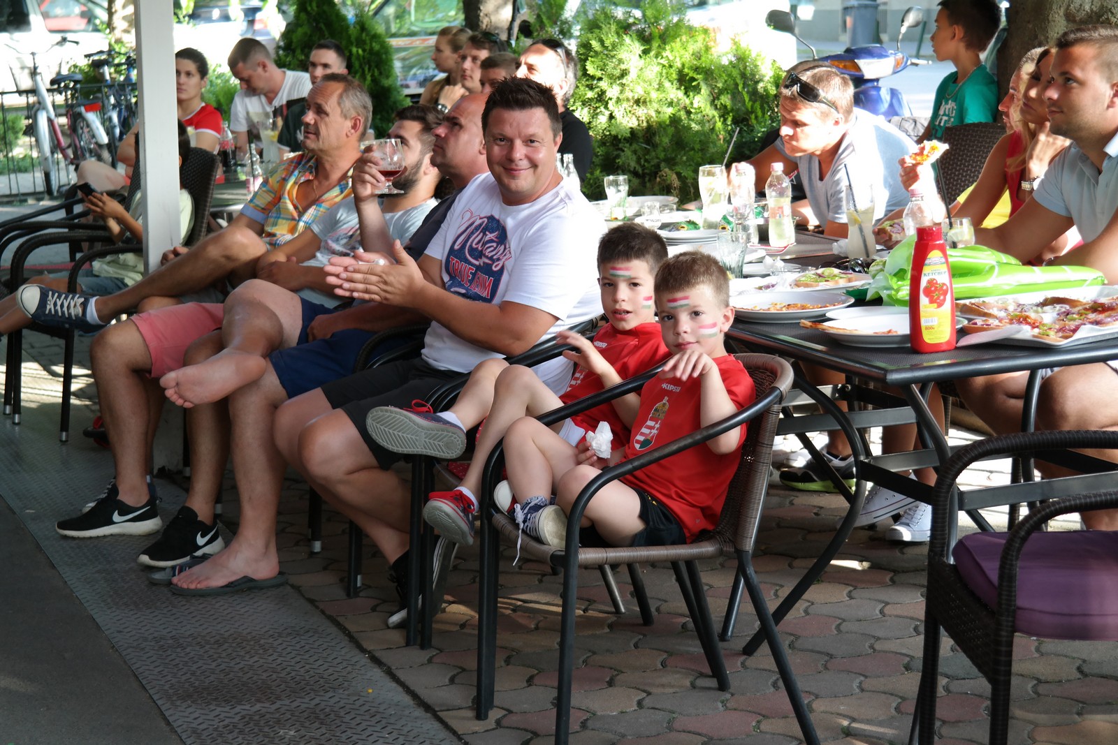 Városszerte az ilyenkor szokásos hangulat volt jellemző, izgalom és bekiabálások a helyzeteknél, aztán amikor Gera Zoltán a bal alsó sarokba bombázott, szinte parázslott a levegő, egyként ünnepelt mindenki, a 2-3 éves gyerektől a 60-70 éves nagypapákig, fiúk és lányok vegyesen, mindenféle korosztály együtt. Cristiano Ronaldo hiába talált be kétszer is, Portugália így sem bírt a mieinkkel, nekünk ott volt Dzsudzsák, aki szintén duplázott, és még kétszer zúgott a vendéglők teraszáról a gólöröm.