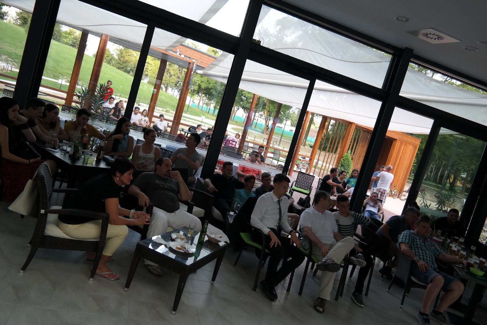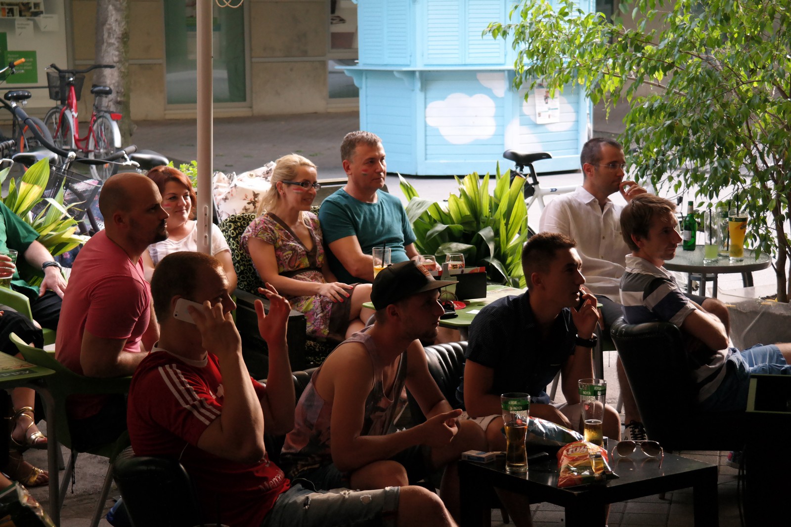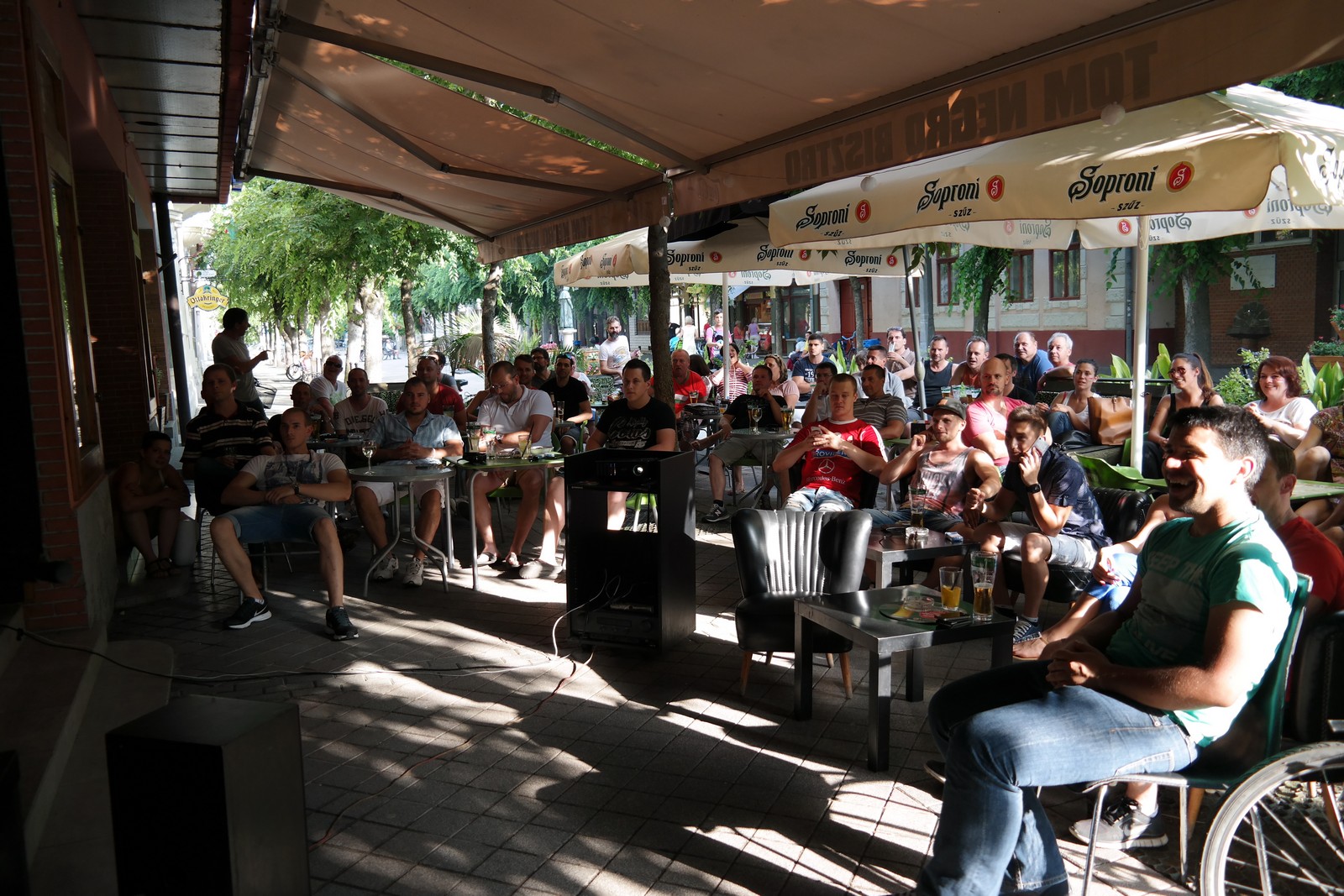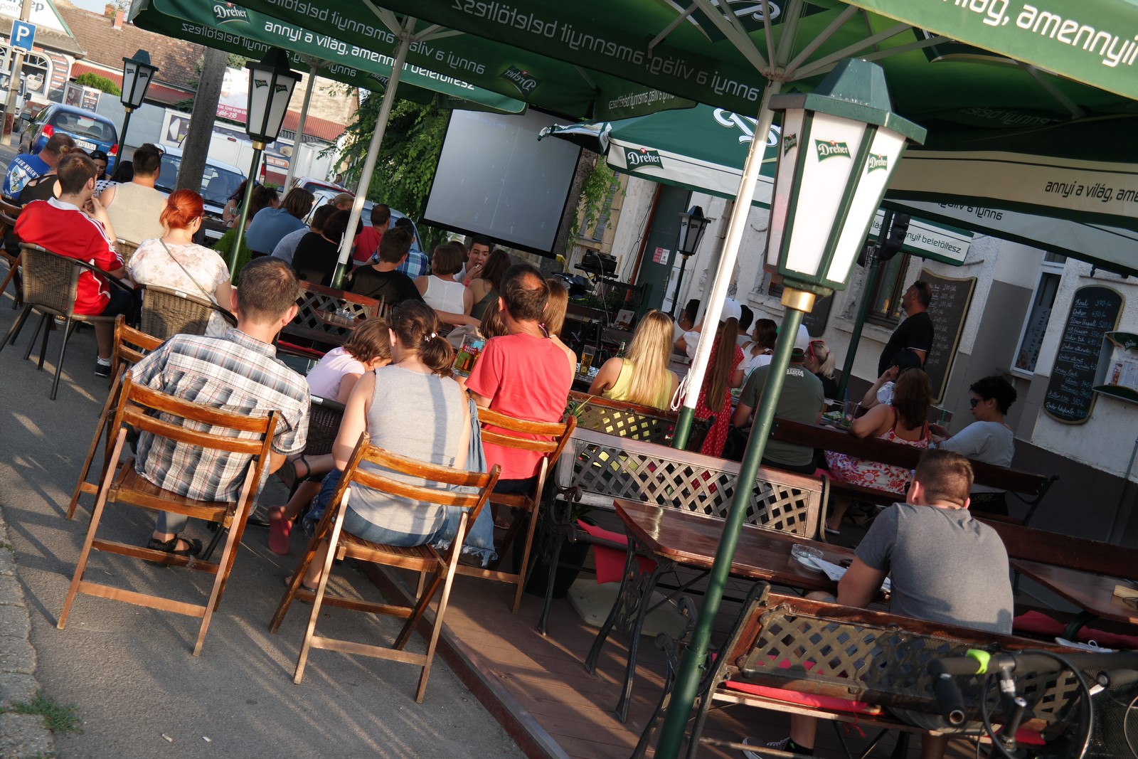 Olyan helyeket igyekeztünk tegnap Kalocsán felkeresni, ahol nem kényelmetlen pózokba merevedve, szuterénben nyomorogva vagy levegőtlen bokszokba szorítva kell nézni a sporteseményeket, hanem a szabad levegőn, ahol ideális teret hoztak létre azok számára, akiket a sport szeretete, egy-egy meccs izgalma vonz bizonyos estéken a vendéglátóhelyekre.