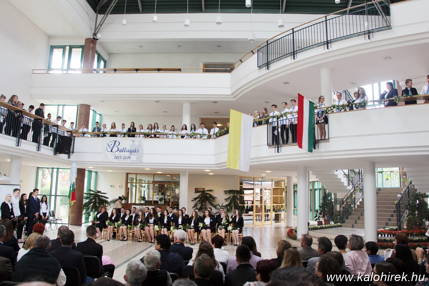 A hagyományok szerint a 11. és a 12. évfolyam diákjainak és szüleiknek részvételével, ünnepi szentmisével indult a Nagyasszonyunk Katolikus Gimnázium végzőseinek ballagása május 3-án pénteken délután, amelyet a diákokat a felső tagozattól tanító Fülöp Ernő plébános tartott. Az ünnepség a Nagyasszonyunk Katolikus Intézmény aulájában folytatódott, ahol családtagjaik, barátaik körében búcsúztatták őket az alsóbb évfolyamosok és tanáraik.
