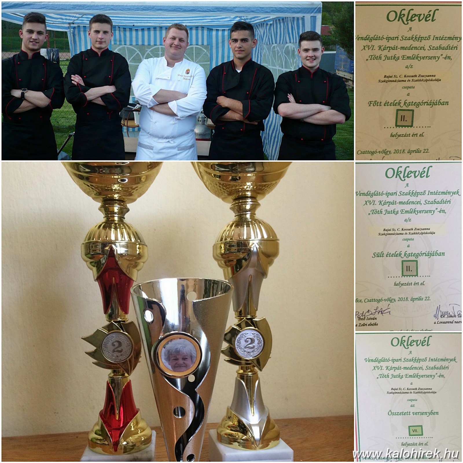 Verőcén, a „Duna-kanyar kapujában”, a Csattogó-völgyben április 22-24-én rendezték meg a Vendéglátó-ipari Szakképző Intézmények XIV. Kárpát-medencei, Szabadtéri Tóth Jutka Emlékversenyét. A szomszédos országok csapatait is fogadó versenyt a Szabadtűzi Lovagrend szervezte. A szépséges környezetben szép eredmények születtek, más elismerések mellett a Bajai SZC Kossuth Zsuzsanna Szakgimnáziuma és Szakközépiskolája négy fős „Kalocsai fiúk” csapata két ezüstéremmel tért haza.