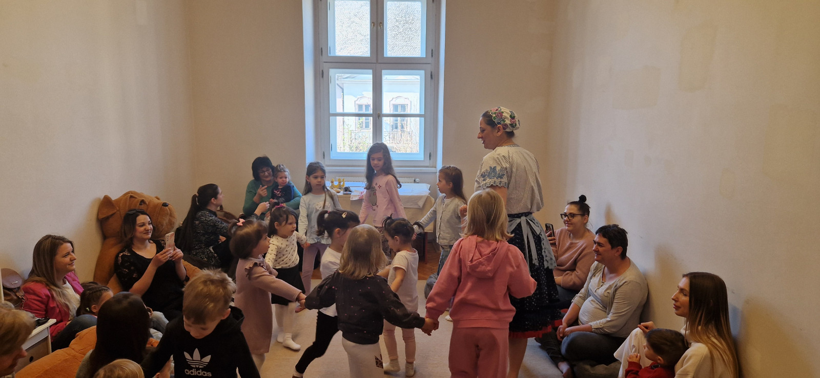 A program egy interaktív mesével indult: a „Kihajtom a libám a rétre” című mesés előadás során Vácz Péterné Erika játékosan vonta be a gyerekeket a történetbe. A kicsik örömmel válaszoltak a kérdésekre, énekeltek, sőt néha a mese szereplőivé is válhattak, ami rengeteg nevetést hozott a terembe.